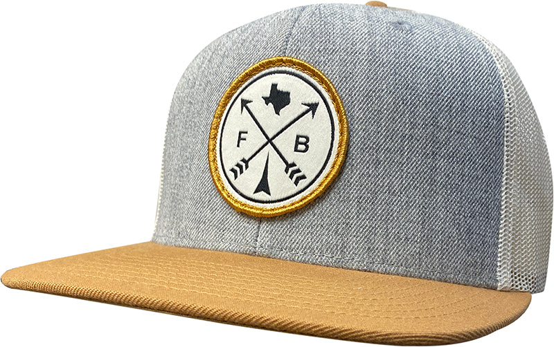 Cap #03RFO - Heather / Birch / Gold with Criss Cross FB Patch