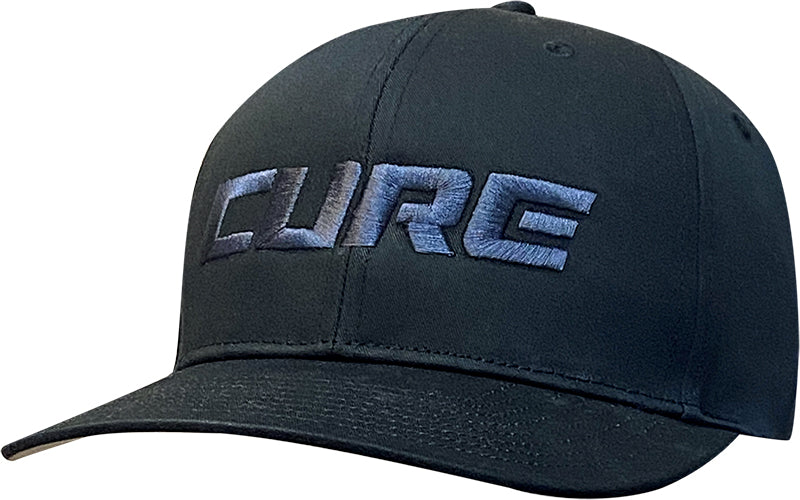 Adjustable Richardson 212 low profile. Black cap with Cure logo in satin finish embroidery. #03RFT