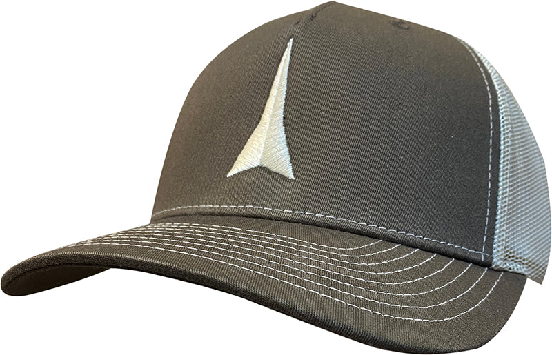 Adjustable Richardson 112FP. Chocolate Chip front with Birch mesh. Embroidered vertical rocket on front center . #03RFY