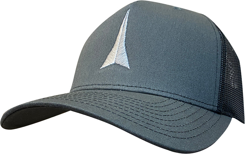Adjustable Richardson 112FP. Charcoal front with Black mesh. Embroidered vertical rocket on front center . #03RFX