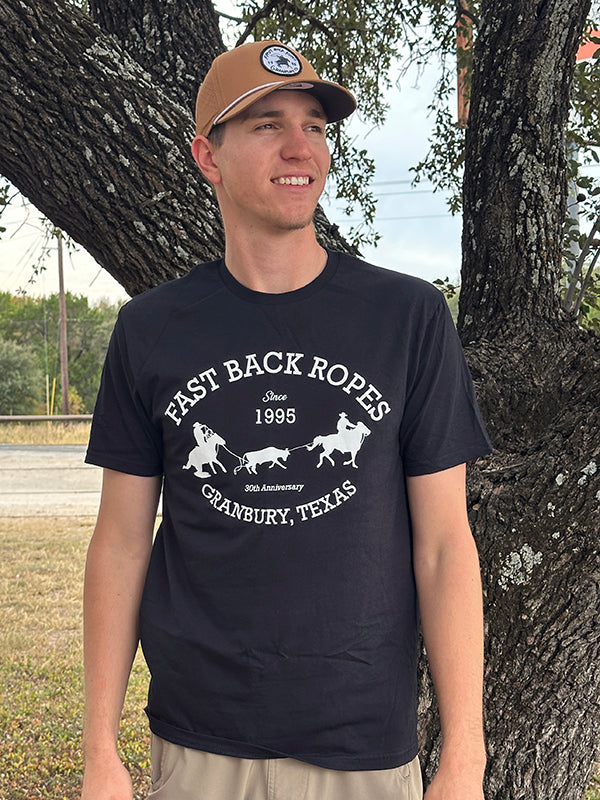 Black short sleeve t-shirt with white art. 100% Cotton.