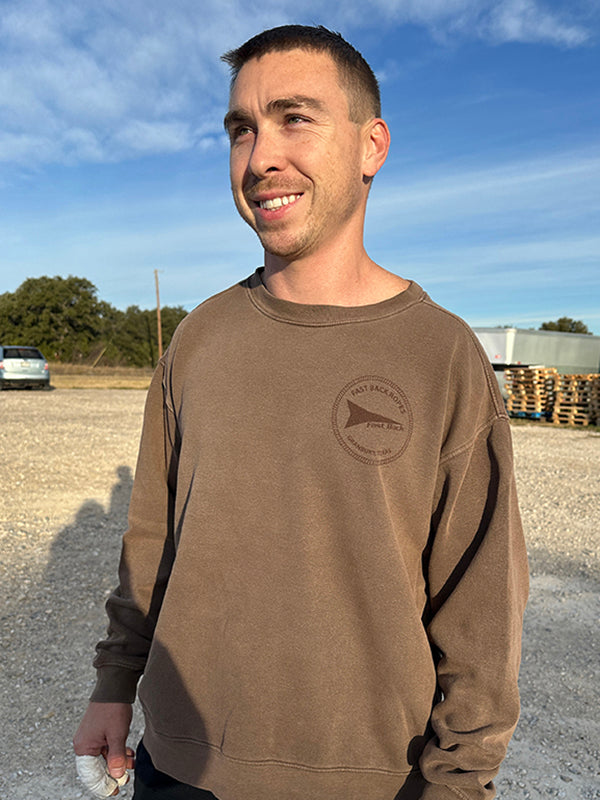 This dyed ringspun crewneck boasts a vintage-inspired aesthetic with its soft, worn-in feel and bold, retro design. It's perfect for those who appreciate a blend of comfort and standout style! Fabric: 80% ringspun cotton/20% poly fleece. Indigo, Coffee